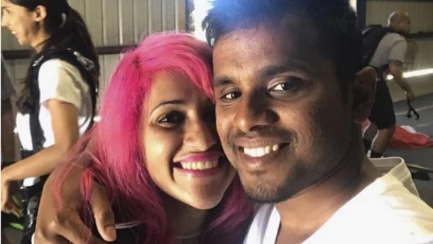 | Vishnu Viswanath, right, and his wife Meenakshi Moorthy |